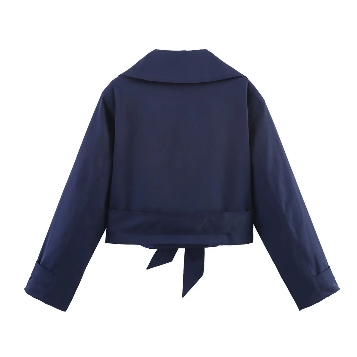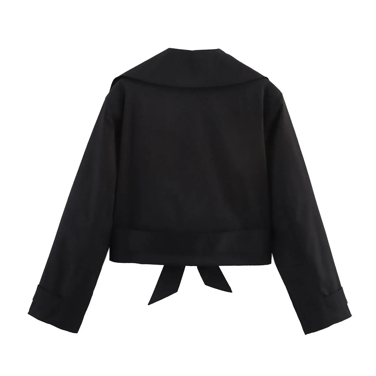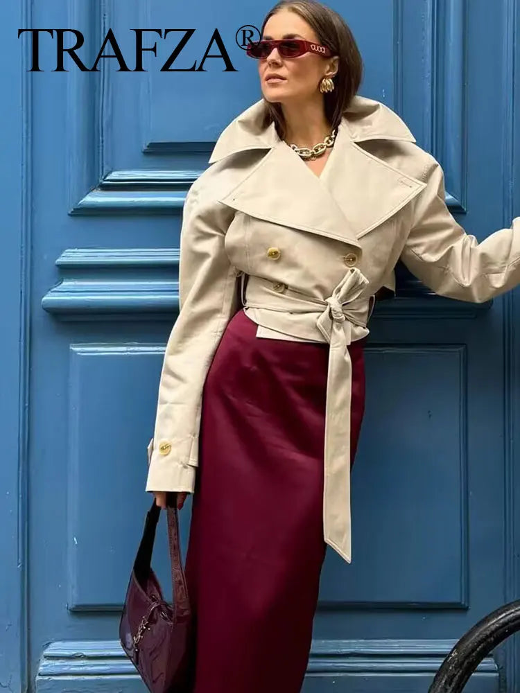 TRAFZA 2025 Spring Retro V-neck Double Breasted Women's Pocket Top Loose Jacket Women's Street Casual Lace-up Short Trench Coat