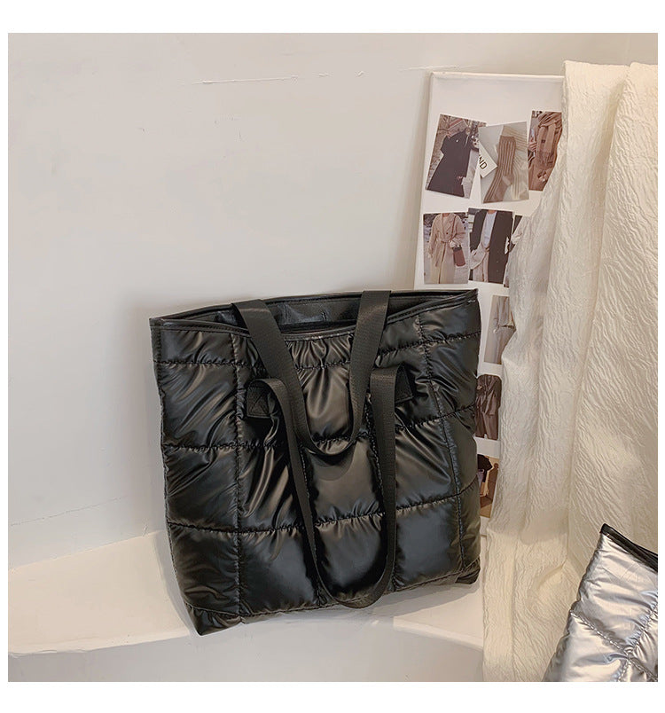 Waterproof Tote Bag for Women Puffer Cotton Padded Shoulder Bag Large Capacity Ladies Handbags Quilted Work Commute Shopping Bag