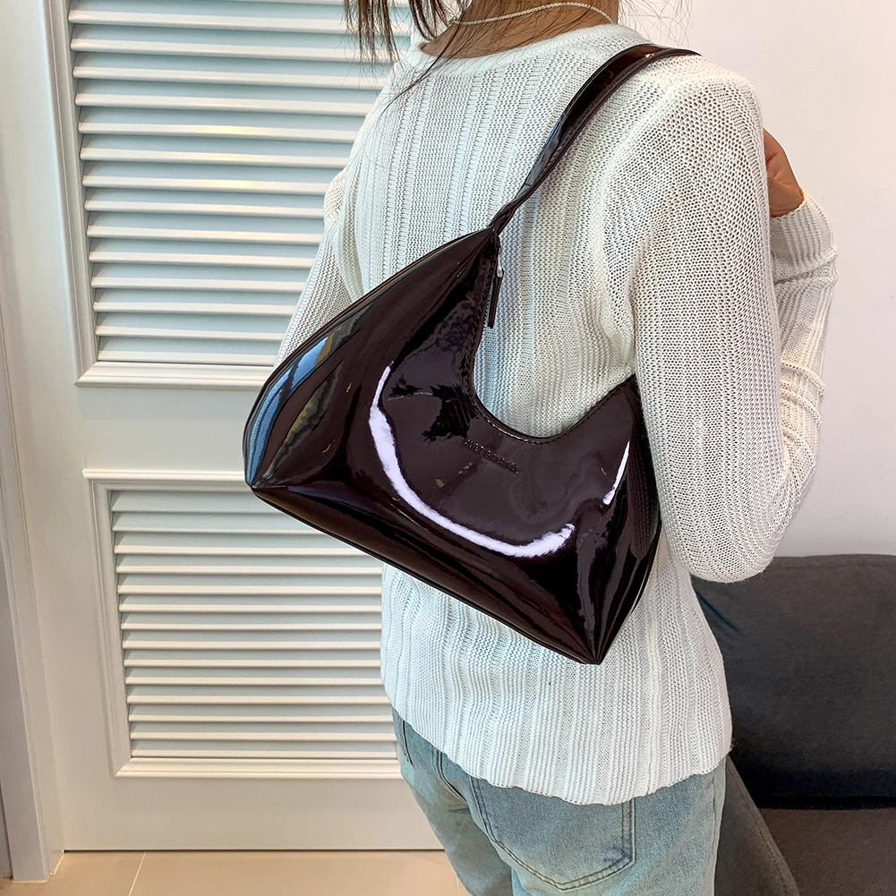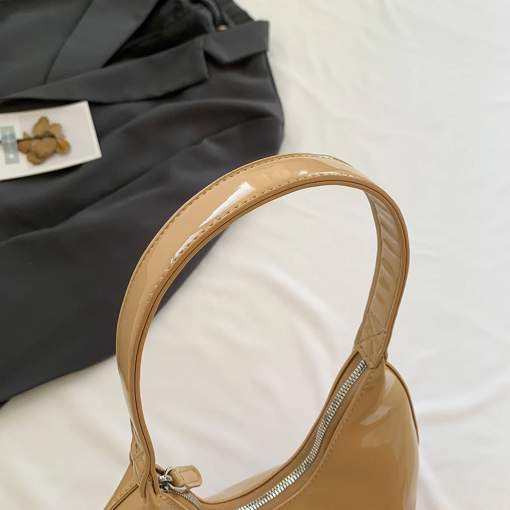 Women Patent Leather Tote Bag Versatile Fashion Shoulder Bag Casual Satchel Hobo Bag Underarm Bag Girl Zipper Small Handbags