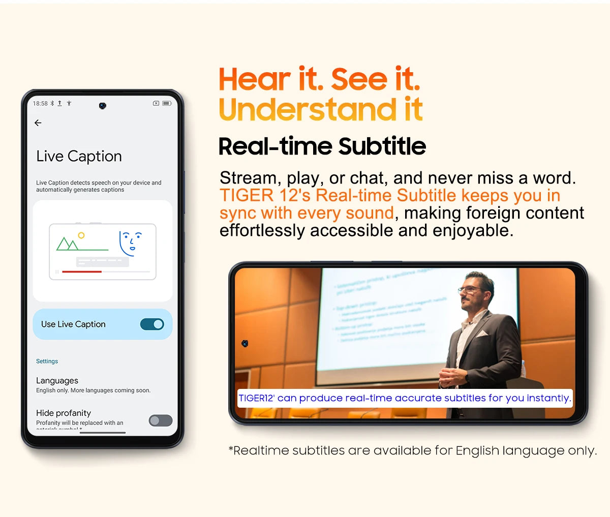 Stream, play, or chat, and never miss a word. TIGER 12's Real-time Subtitle keeps you in sync with every sound, making foreign content effortlessly accessible and enjoyable.