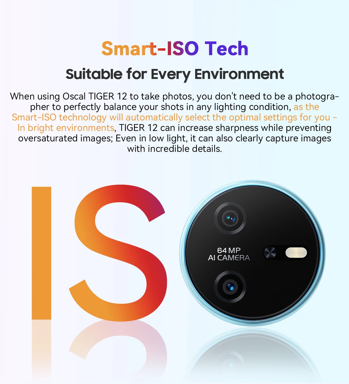 When using Oscal TIGER 12 to take photos, you don't need to be a photographer to perfectly balance your shots in any lighting condition, as the Smart-ISO technology will automatically select the optimal settings for you - In bright environments, TIGER 12 can increase sharpness while preventing oversaturatedimages; Even in low light, it can also clearly captureimages with incredible details.