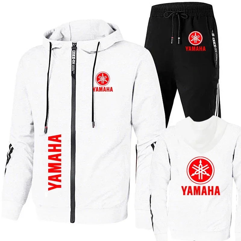 雅馬哈摩托車賽車服男裝雅馬哈標誌印花拉鍊衛衣和褲子男套裝自行車夾克男運動服套裝